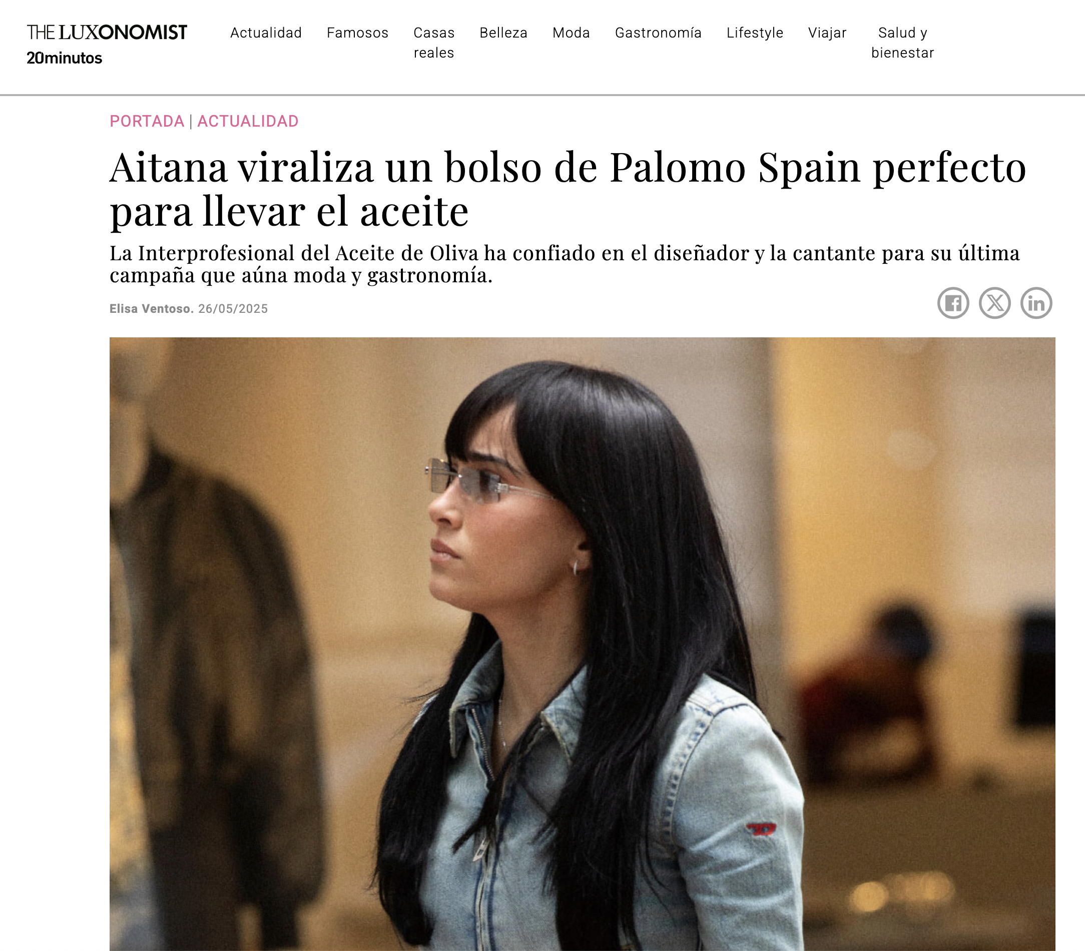 Aitana viraliza un bolso de Palomo Spain perfecto para llevar el aceite